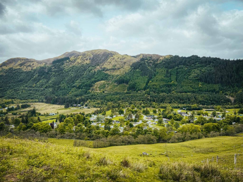 Glen Nevis Caravan & Camping Park widziany z Ben Nevis Mountain Track