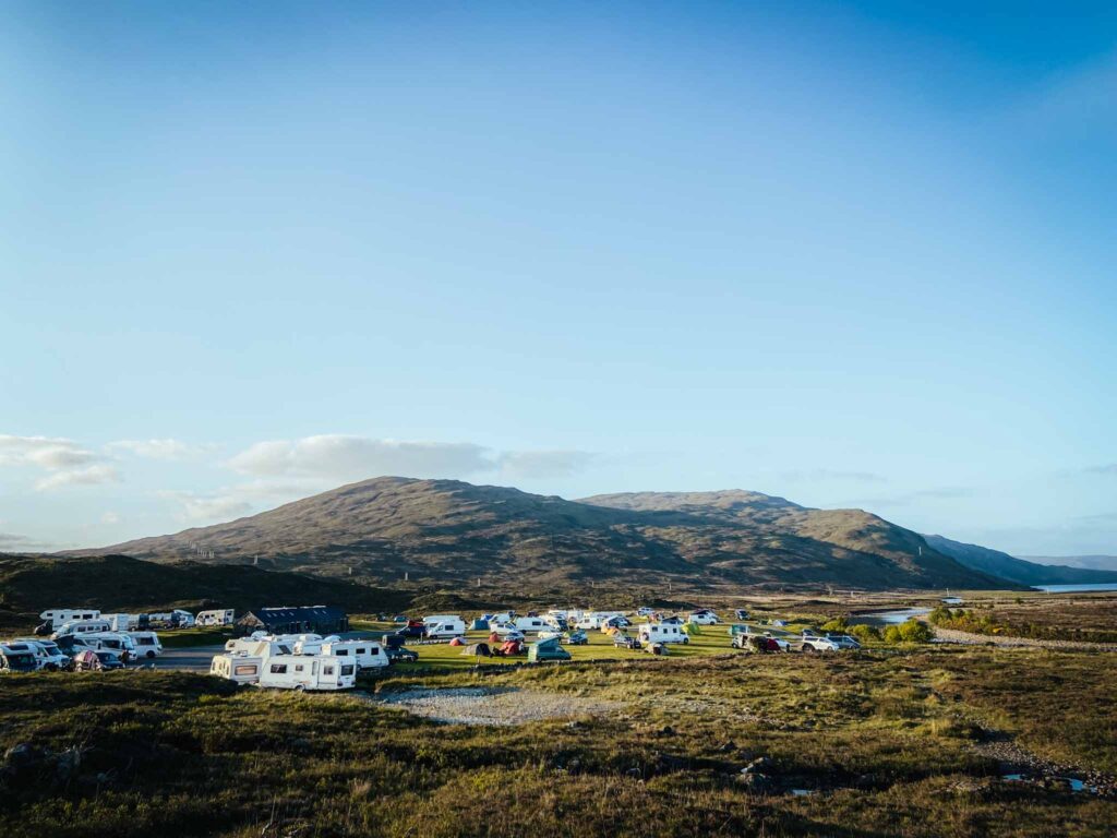 I tak dla przykładu – Glen Nevis Caravan & Camping Park to ultra popularne miejsce, dające możliwość bezpośredniego wyjścia na szlak na Ben Nevis – najwyższy szczyt w Wielkiej Brytanii. Jest doskonale zorganizowane, stanowiska z których korzystaliśmy mają przyłącze prądu i wody. Na terenie kempingu jest kilka budynków z toaletami, prysznicami, pomieszczeniami, gdzie można pozmywać i zrobić pranie. Jest też sklep oraz recepcja będąca świetnym punktem informacyjnym. Oba miejsca są czynne rozsądnie długo, żeby móc z nich korzystać. Dodatkowo, w bezpośrednim sąsiedztwie jest duża restauracja, położona nad rzeką. Nie chciało nam się stamtąd wyjeżdżać.
