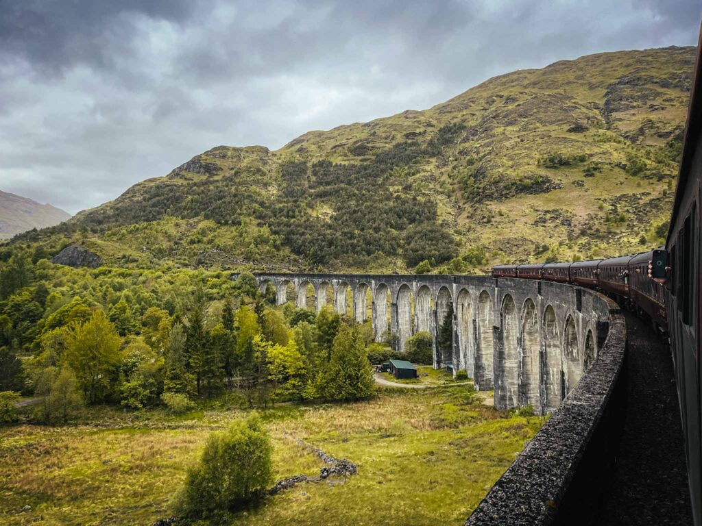 3. Trasa Fort William – Mallaig jakobickim pociągiem parowym to nie lada okazja, aby poczuć się jak na planie filmowym. Pociąg ten zyskał bowiem popularność po wypożyczeniu go do studia Warner Bros. To właśnie fikcyjny Hogwarts Express w filmach o „Harrym Potterze”. Trasa na linii West Highlands uważana jest za jedną z najpiękniejszych podróży pociągiem na świecie. Bez wątpienia najbardziej oczekiwany moment na trasie to przekroczenie Wiaduktu Glenfinnan – o długości 380 m, wysokości 31 m i 21 łukach. Wskazówka – o zakupie biletu warto pomyśleć kilka miesięcy wcześniej. Naprawdę trudno o dostępność miejsc w pociągu.
