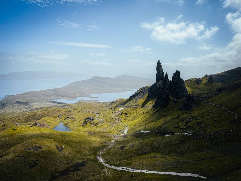 4. The Old Man of Storr – to najbardziej spektakularny krajobraz wyspy, który swoim surowym klimatem przyciąga każdego roku tysiące turystów i fotografów. Storr to skaliste wzgórze na półwyspie Trotternish na wyspie Skye. Wzgórze przedstawia stromą skalistą wschodnią ścianę z widokiem na Sound of Raasay, kontrastującą z łagodniejszymi trawiastymi zboczami na zachodzie. Pobyt na wyspie Skye nie będzie kompletny bez zobaczenia The Old Man of Storr.